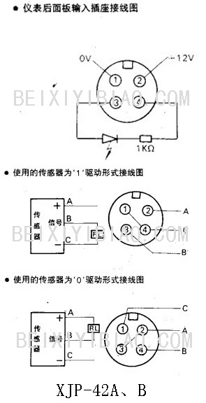 XJP-42A、B是一种面板安装式四位数字显示的测速仪。采用单片微机,体积小、重量轻、字形清晰、安装方便。信号输入端采用光电耦合方式,有较好的抗干扰性。当使用LJ或3SG系列接近开关作转速传感器时,只要求被测轴上有一个金属突出物便可进行非接触式转速测量。配本厂SZHG-01霍尔效应式转速传感器能进行接触式转速测量。