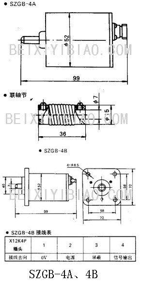 SZGB—4A、4B光电转速传感器是一种采用红外光电器件结构的小型封闭式转速传感器,具有供电电源范围大、功耗小、寿命长、抗干扰能力强、传输距离远等优点。使用时通过联轴节与被测轴连接,当转轴旋转时,将角位移转换成电脉冲信号,供计数器使用| SAGB-4A | SZGB-4B | ||