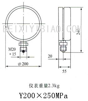 Y200*250MPA特规压力表(特规)是在Y200*250MPA普通高压表基础上派生产品,是1975~1976年专为江西平板玻璃厂制造水晶;金刚石试制的,经不断改进,提高完善,已广泛用于全国晶体材料生产系统,并得到用户一致好评,已定为水晶行业专用压力表。