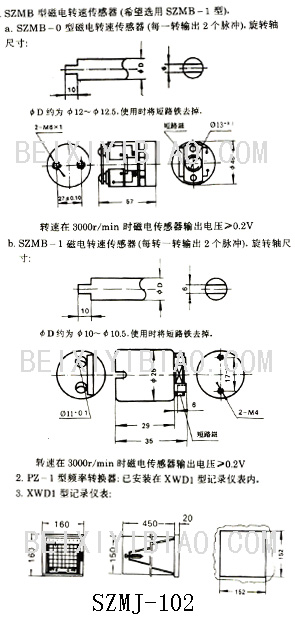 本仪表用于远距离测量转速,记录转速,并达到二点转速报警目的,当配用SZMB-3型传感器时,能测量低转速,配用SZMB-0或SZMB-1型传感器时测量高转速。