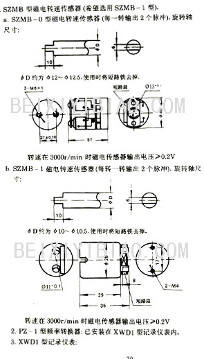 仪表配用SZMB-3型传感器时,能测量低转速,配用SZMB-0或SZMB-1型传感器时测量高转速。