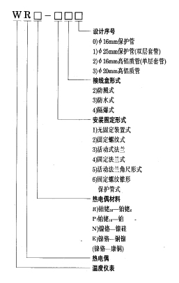 | 热电偶类别 | 产品型号 | 分度号 | 测温范围℃ | 保护管材料 | 规格 | 接线盒形式 |