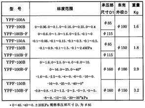 膜片压力表适用于测量具有一定腐蚀性、非凝固或非结晶的各种流体介质的压力或负压。 耐腐蚀性能取决于膜片材料。| Y | P | F |